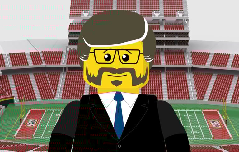 A 14-second animated short featuring a Lego-style character performing a sportscaster role inside a stadium press box. The animation includes lip-synced dialogue voiced by you, capturing a broadcast-style delivery with humor and personality.